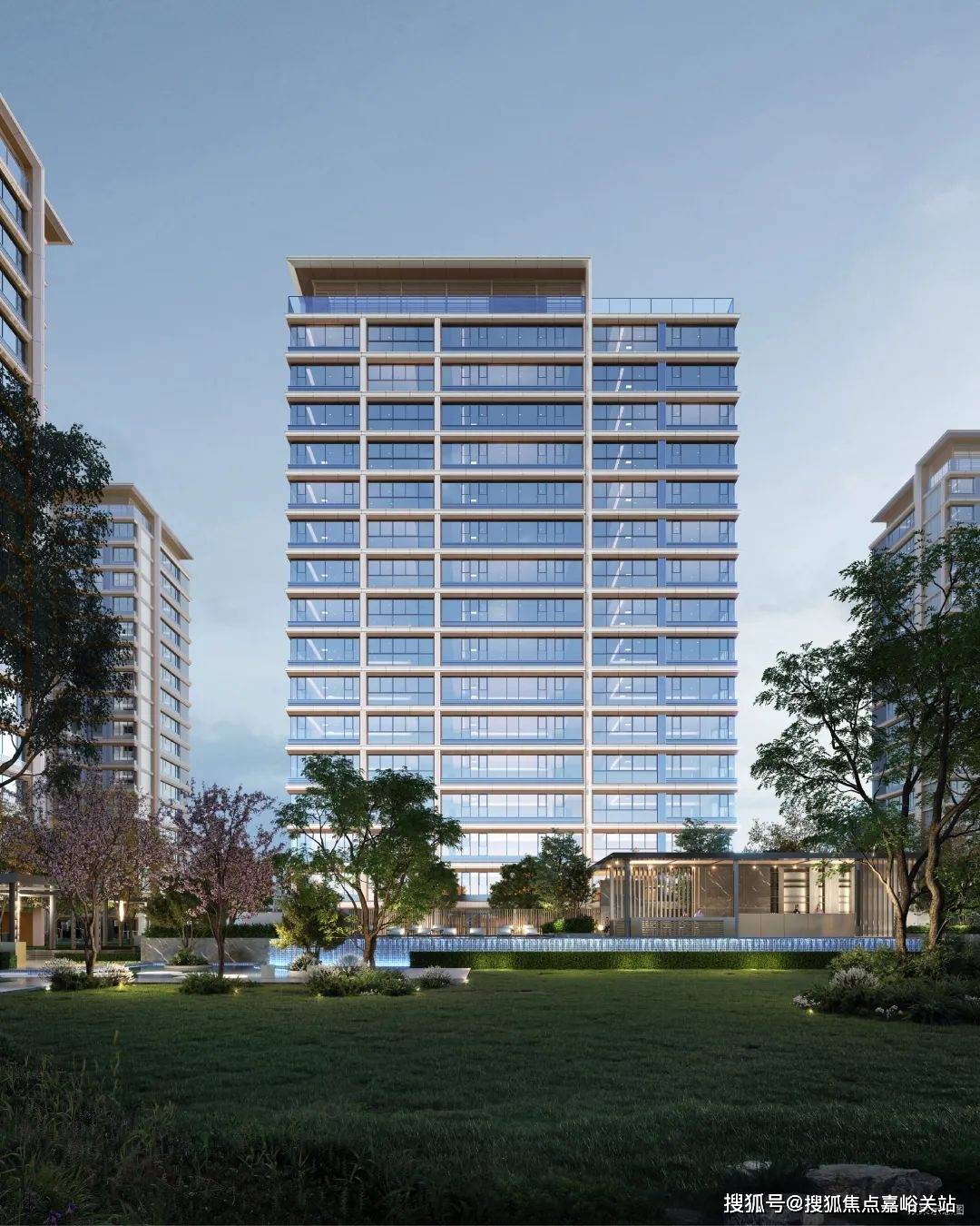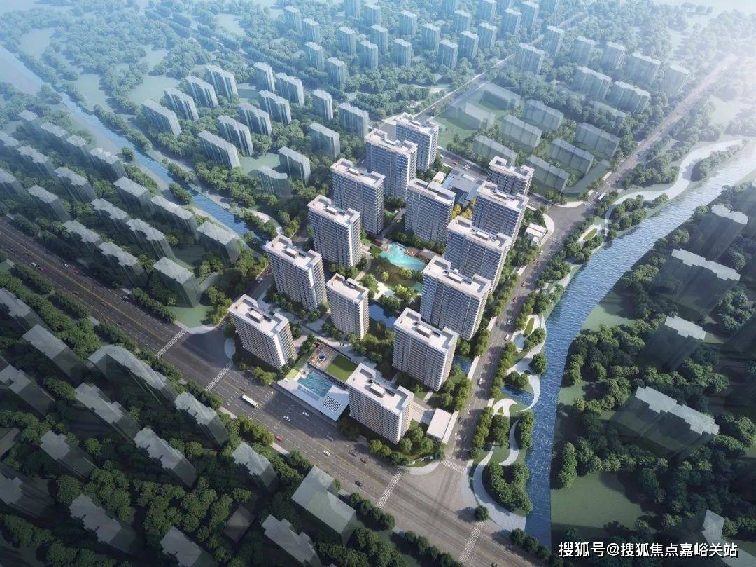 项目位于城区核心区内,东侧临河及七彩公园,地块内有水系,北侧为公园,水系、绿地天然资源极其丰富。社区是现代简约风格,采用非对称“L型”立面,