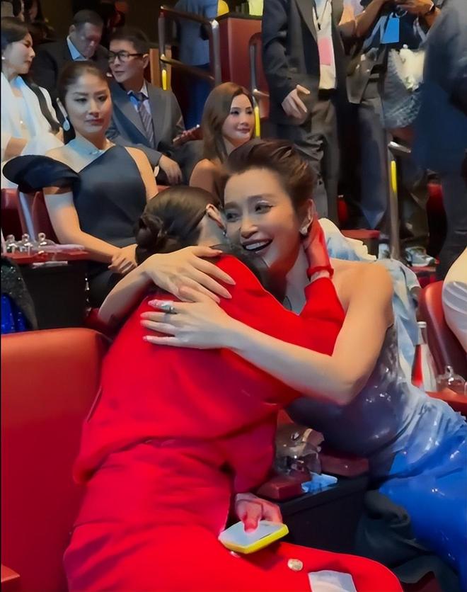 李冰冰的人脉不用多说,张柏芝还没坐到座位上的时候,就已经弯下身子和李冰冰打招呼了。